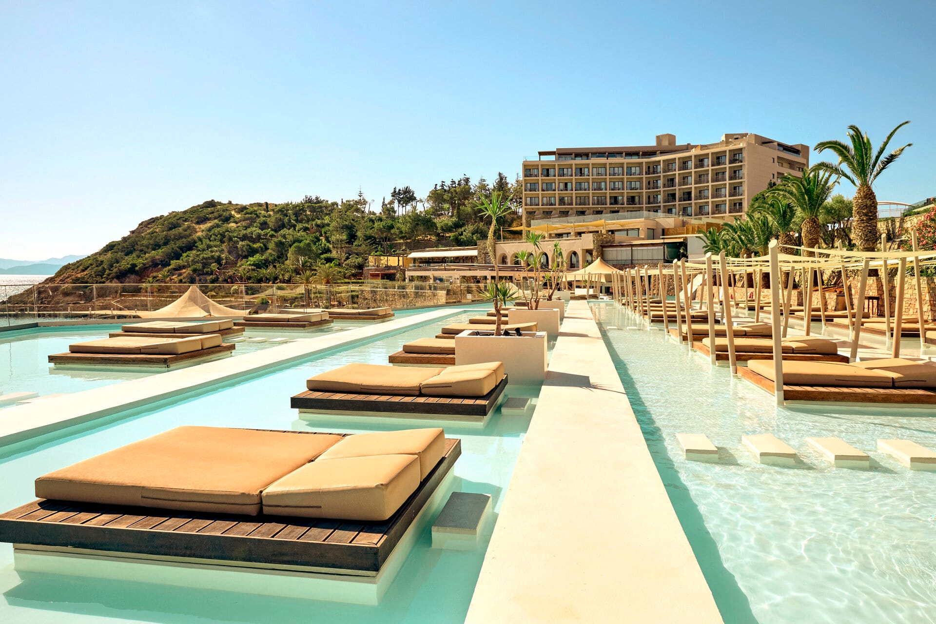 Motivated by an unceasing fervor of manifold evolution, Mirabello Bay Luxury Resort's bungalows and suites have been exceedingly upgraded, and 125 marvelous private and jetted pools were added to this one-of-a-kind wonderland. Ideally designed for families, couples, and event participants, the 343 guestrooms, suites and bungalows intelligently blend the contemporary refinement and the serene elegance with the island elixir and synthesize an unparalleled hideaway ornamented with olive trees, perfect for your bespoke experiences.
